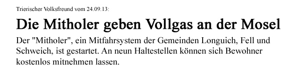 mitholer - Das Mitfahrsystem in Longuich, Fell & Schweich